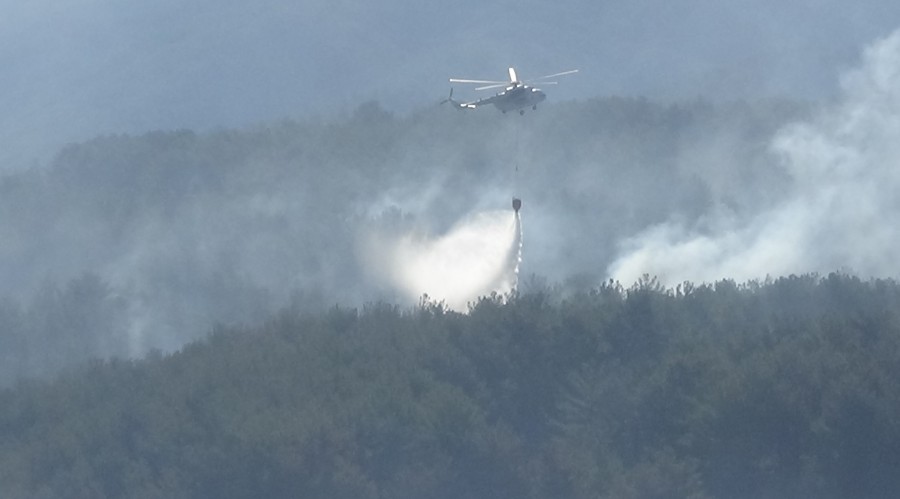 Söndürme çalışmalarına AT-801 Airtractor uçaklarının yanı sıra Orman Genel Müdürlüğüne bağlı Mi-8 ve Mi-17 tipi helikopterler ile Jandarma Genel Komutanlığına bağlı T-70 Black Hawk ve Mi-17 tipi helikopterler, Türk Hava Kurumu'na bağlı CL-215 tipi amfibi uçaklar müdahale ediyor.