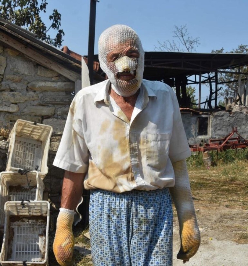Yüzünde ve ellerinde yanıklar oluşan Demir, hastanedeki tedavisinin ardından yaralı yerleri sargılı şekilde köyüne döndü.