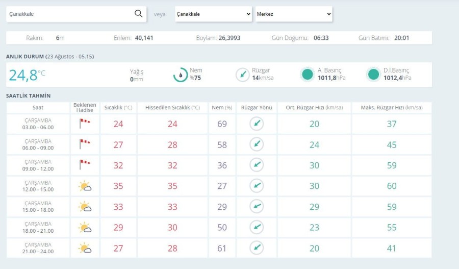 Meteoroloji 23 Ağustos hava durumu raporunu yayımladı. Yeni raporda alevlere teslim olan Çanakkale için sıcaklık ve rüzgar uyarısı yapıldı.