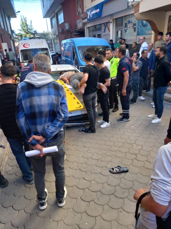 Çarpmanın etkisiyle savrulan Muhammed G., otomobilin arka camına çarptı.