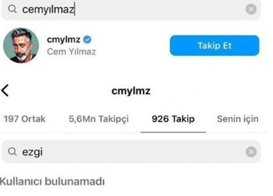 Netflix'te yayınlanan Erşan Kuneri'nin 2. sezon çekimlerine başlayan Cem Yılmaz, daha önce dizide birlikte rol aldığı Ezgi Mola'yı sosyal medya hesabında takip etmeyi bıraktı.