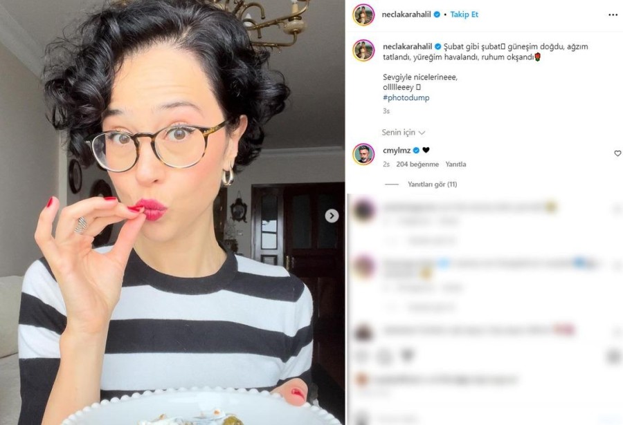 Necla Hanım, "Şubat gibi şubat🫀 güneşim doğdu, ağzım tatlandı, yüreğim havalandı, ruhum okşandı. Sevgiyle nicelerineee, ollllleeey" notunu düştüğü son paylaşımıyla öne çıktı. Sevgilisi Cem Yılmaz bu fotoğrafa kayıtsız kalamayıp sevgilisine kalp emojisi yolladı. Böylece aşk belgelenmiş oldu.