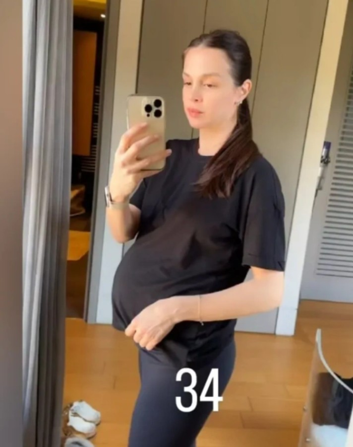 Hamileliğinin 34. haftasında olan Cemre Kemer, karnı burnunda hallerini takipçilerinin beğenisine sundu.