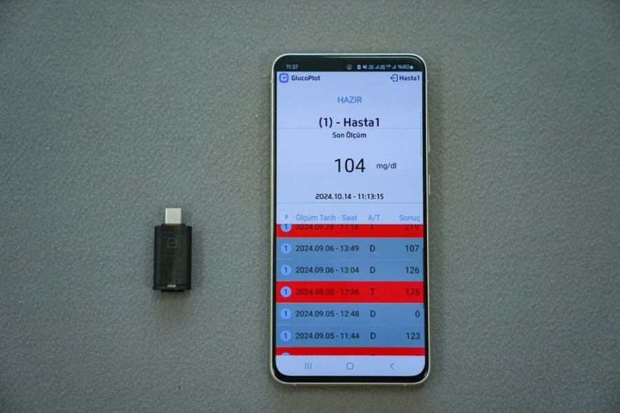 TÜBİTAK'ın da destek verdiği çalışmayla parmaktan alınan kandan şeker ölçümü yapabilen "glukometre probu" geliştiren bilim insanları, bu cihazın cep telefonu şarj girişine takılması yoluyla ölçüm verilerini uygulama üzerinden hastane ya da doktora anlık gönderme seçeneği sunuyor.