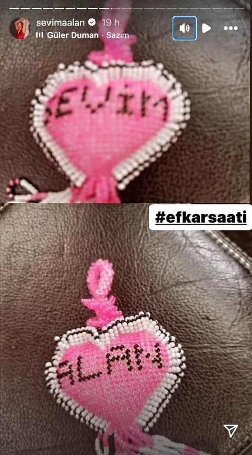 Sevim alan boncuklu süs eşyasını sosyal medya hesabından 'Efkar saati' etiketiyle paylaştı.