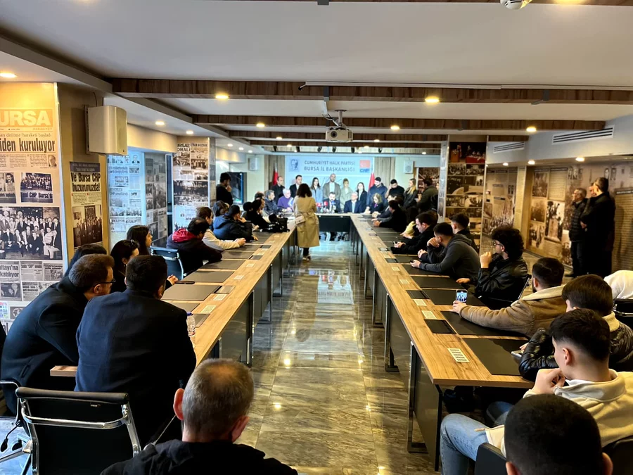 CHP Bursa İl Gençlik Kolları Başkanı Berkcan Bora, KYK burs ve kredilerinin yetersizliğine ilişkin İl Başkanlığında açıklama yaptı.