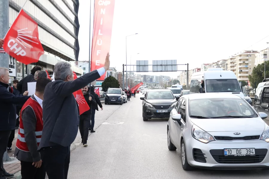 Eylemin şehrin dört bir yanında güçlü destek gördüğünü belirten CHP Bursa İl Başkanı Nihat Yeşiltaş, "Halkımız gün geçtikçe daha çok yoksullaşıyor. Birileri yandaşlarını zengin etsin diye halkı yoksulluğa terk ettiler. Geçilmeyen yollara, kullanılmayan köprülere para var ama emekliye para yok. Sadece faize 2026 bütçesinden 2.7 trilyon para veren iktidar; emekliye, çiftçiye, işçiye, çalışana gelince para yok öyle mi? Bir taraftan yandaş şirketlerin bir gecede trilyonlarca vergi borcunu silen iktidar, fakir fukaraya, işçiye, emekçiye, çiftçiye gelince yok öyle mi? Öyleyse biz de meydanlardayız işte." dedi.