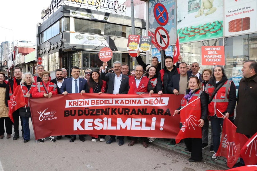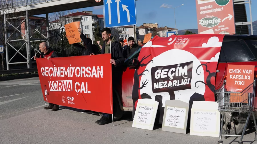 CHP Bursa İl Başkalığı, art arda gelen zamlar, asgari ücrete yapılan yetersiz artış ve emekli maaşlarının açlık sınırının altında kalması sonucu yurttaşların geçim sıkıntısına dikkat çekmek için 17 ilçede eş zamanlı 'geçinemiyoruz' eylemi yaptı.