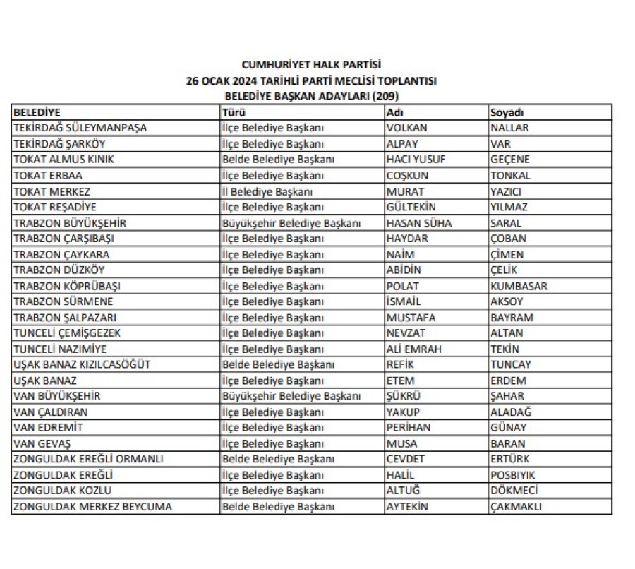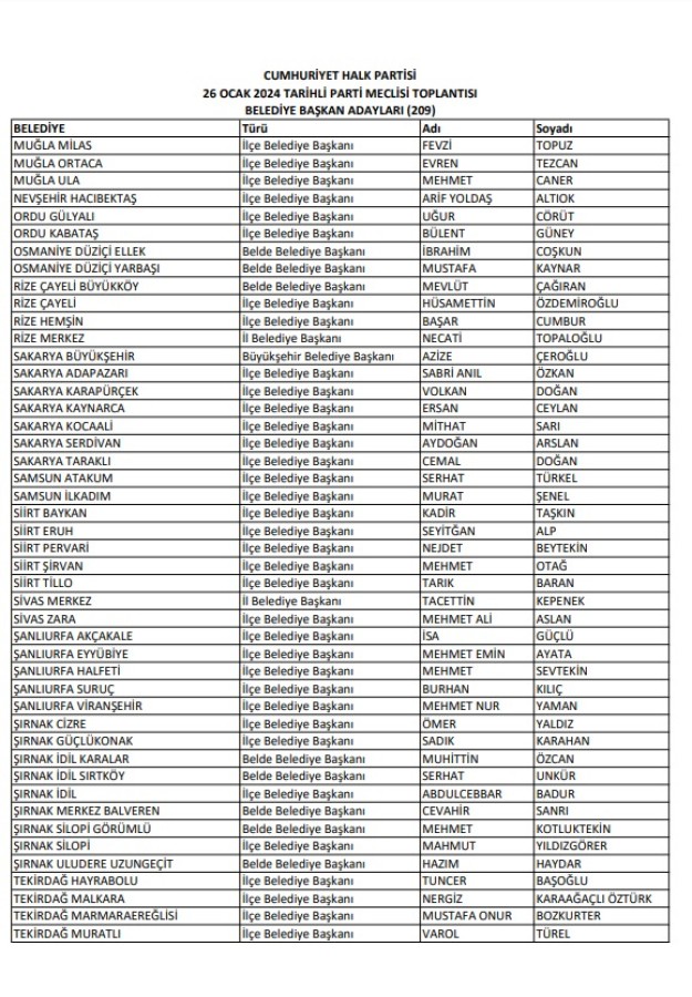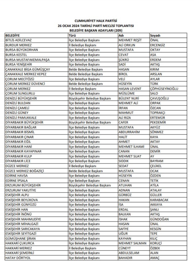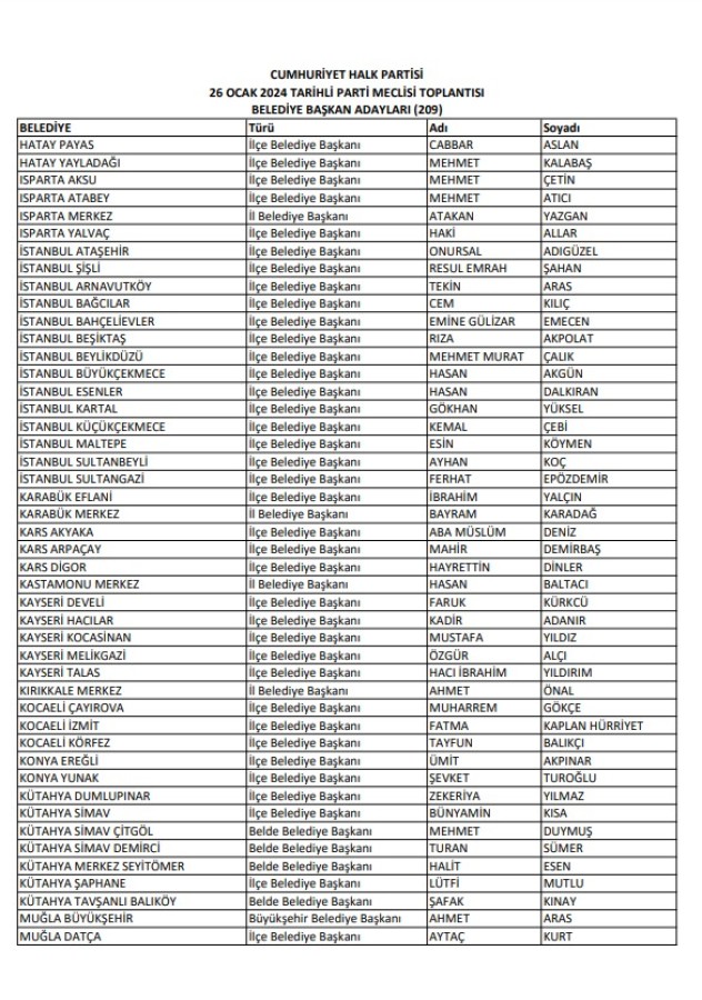 CHP'de 209 Belediye Başkan Adayı daha belli oldu:
