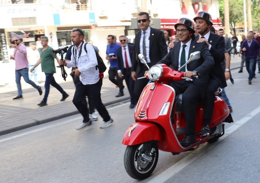 Özgür Özel, Denizli ziyaretinde belediyeye motorla gitti.