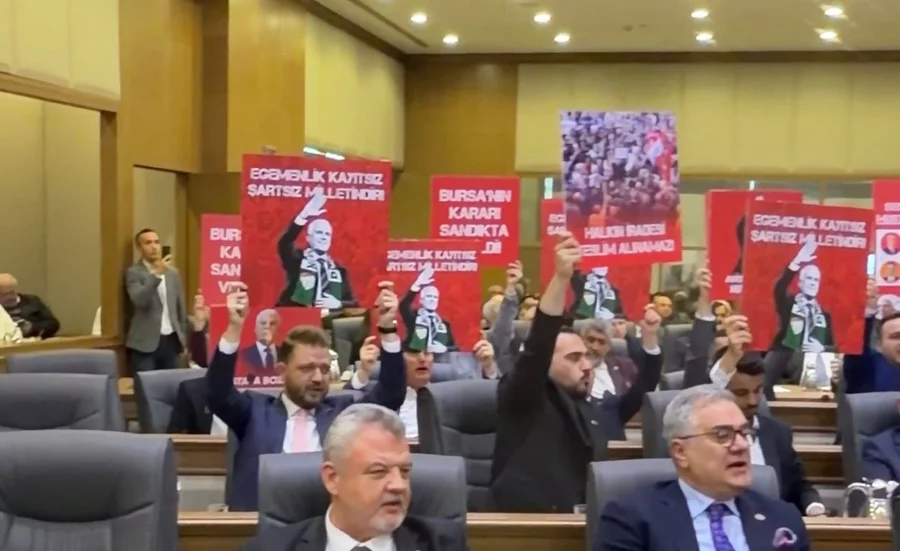 Akbulut'un konuşmasından sonra CHP'li meclis üyeleri Bozbey'in posterlerini havaya kaldırarak "Bursa'nın Başkanı Mustafa Bozbey" sloganı attı.