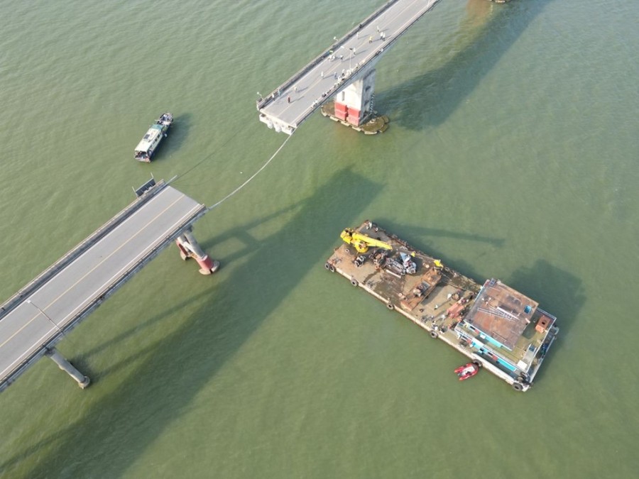 Çin'in Guangcou şehrinde bulunan İnci Nehri üzerindeki Lişinşa Köprüsü'nün orta bölümü kargo gemisinin taşıyıcı sütunlarına çarpması sonucu çöktü, 5 kişi yaşamını yitirdi.