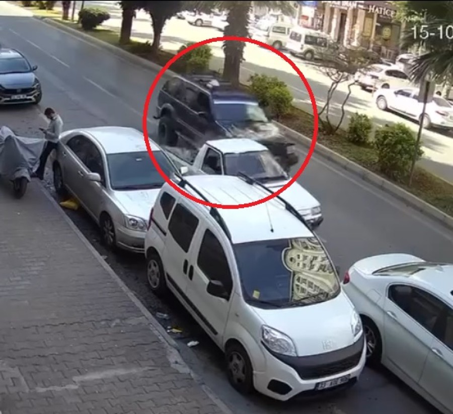 İsmi öğrenilemeyen sürücünün kontrolünü yitirdiği 33 ALJ 816 plakalı cip, Bahçeler Caddesi'nde park halindeki 33 TZ 676 plakalı kamyonete çarpıp devrildi.