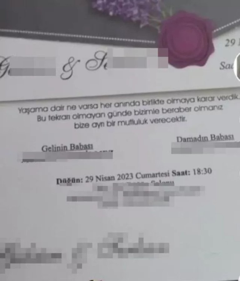Öte yandan, düğüne gelenlere verilen davetiyede ise 'Yaşama dair ne varsa her anında birlikte olmaya karar verdik. Bu tekrarı olmayan günde bizimle beraber olmanız bize ayrı bir mutluluk verecektir' notu olduğu görüldü. Bir süre düğün salonunda kalan davetliler de durumu öğrendikten sonra salondan ayrıldı.