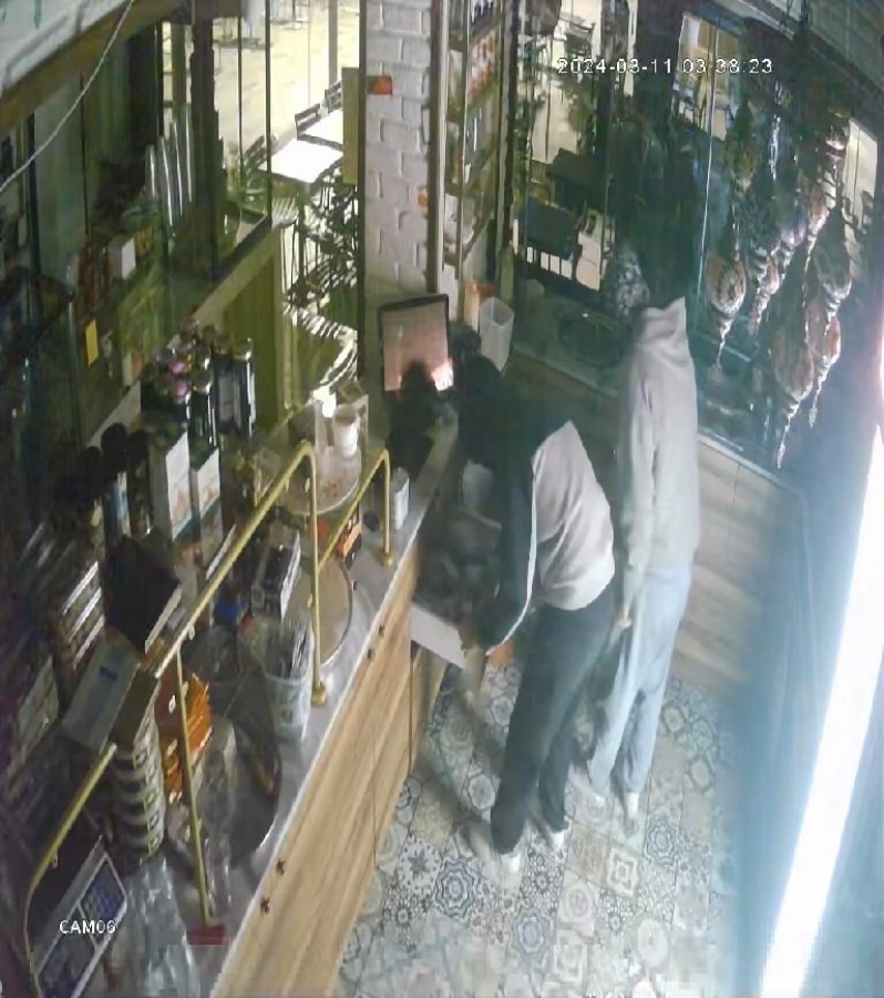 Dükkana camdan giren 2 kişi, açtıkları kasadaki paraları ceplerine doldurdu.