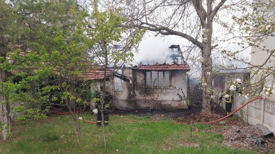 Yangın nedeniyle tek katlı ev kullanılmaz hale gelirken, yangının çıkış sebebinin bulunması için çalışma başlatıldı.