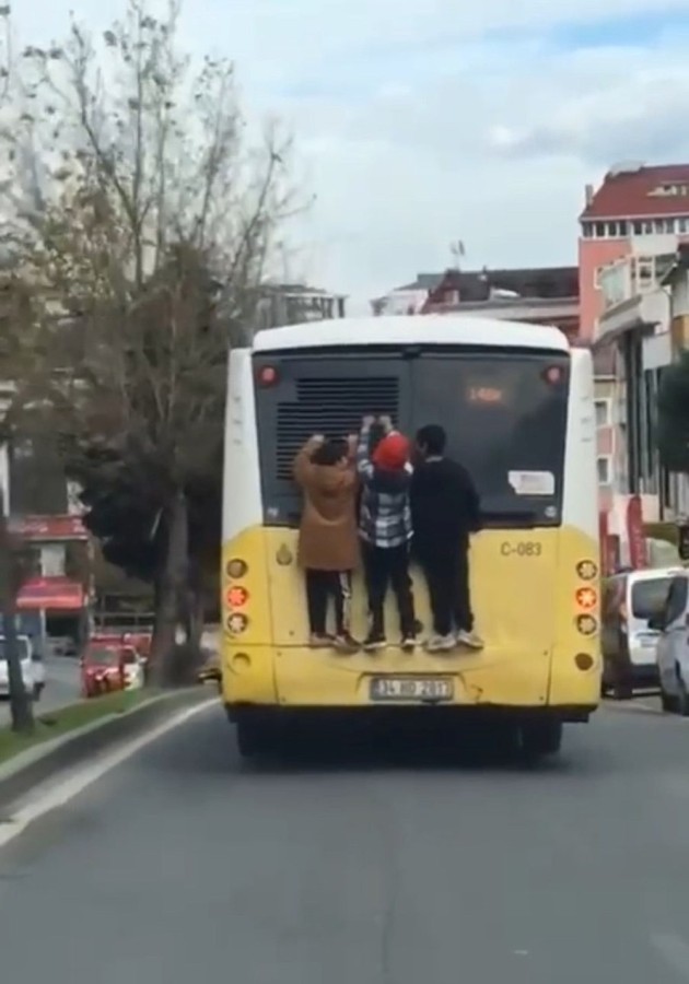 İstanbul'da Üsküdar ve Sancaktepe'deki iki ayrı olayda çocuklar İETT otobüsü ve kamyonetin arkasına tutunarak yolculuk yaptı. Çocukların tehlikeli yolculuğu sürücülerin cep telefonu kamerasına kaydedildi.