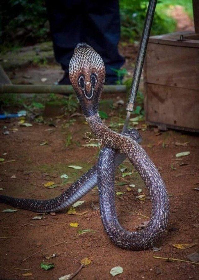 Yılan avcısı biraz uğraşın ardından yılanı yakalar.