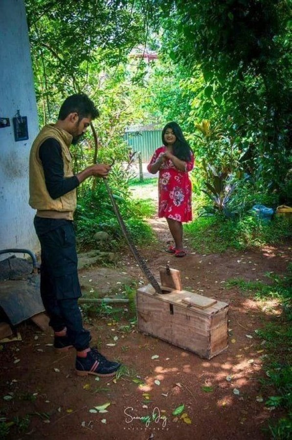 Son zamanlarda Hindistan'dan popülerleşen düğün öncesi fotoroman tarzı fotoğraf çekimlerinden birinde çift aşk hikayelerinin başlangıcını canlandırdı. Ancak başrolde bir kobra yılanı yer aldı.