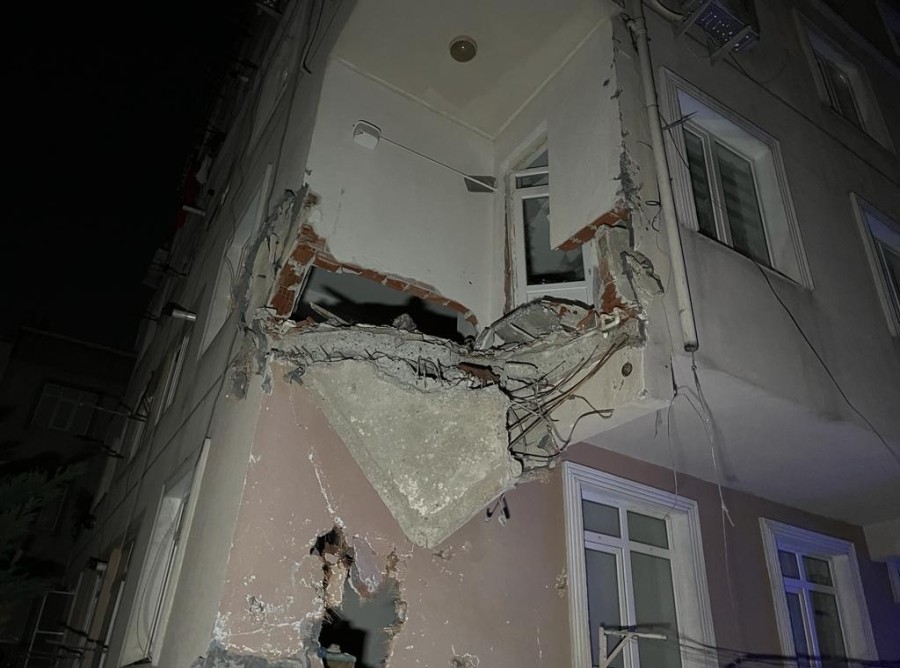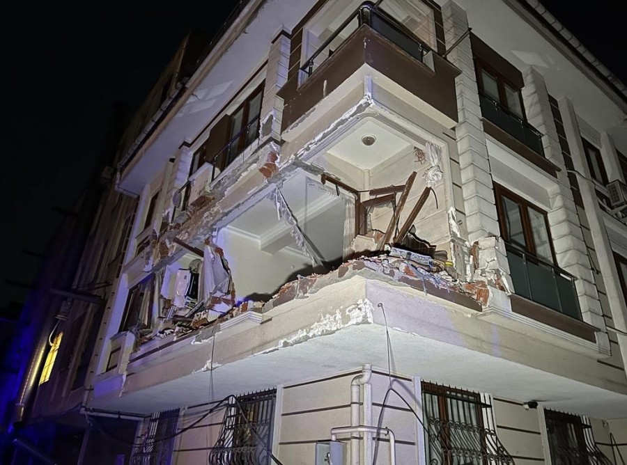 Çöken binanın beton parçaları, çevredeki binalardan birinin balkonuna birinin ise duvarlarına çarparak zarar görmüştü.
