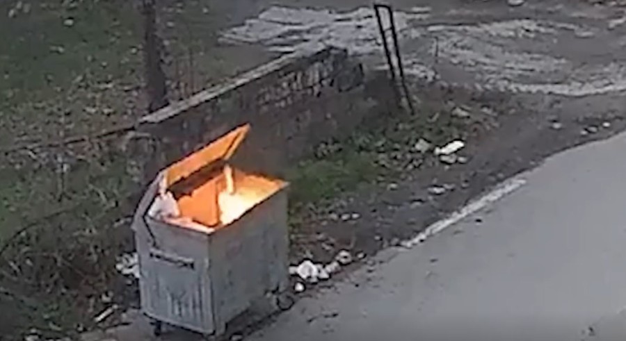 Olay, dün akşam saatlerinde Çay Mahallesi Saatçigil Caddesi üzerinde meydana geldi. Henüz kimliği belirlenemeyen bir kişi, yol kenarında duran çöp konteynerinin yanına gelerek içini kontrol etti.