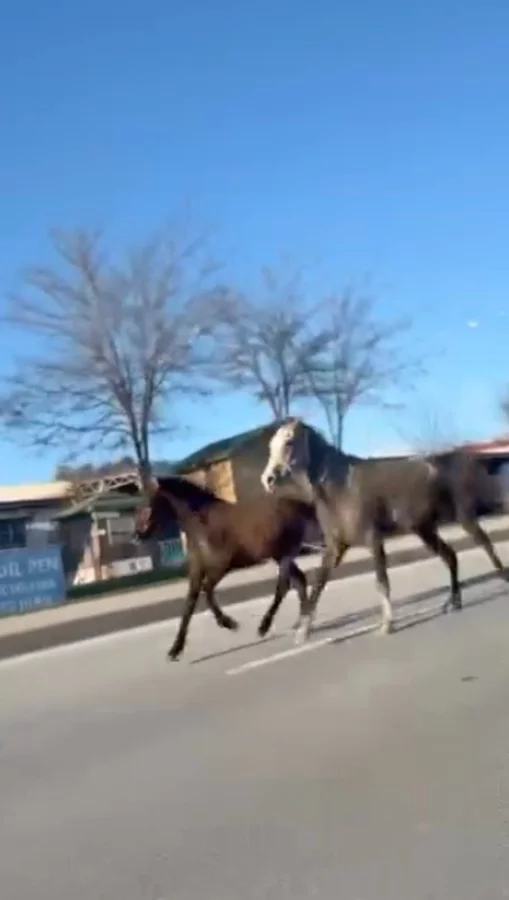 Sungurlu Yeni Sanayi Sitesi mevkiinde başıboş iki at, trafiğin aktığı kara yoluna girdi. Araçların arasında hızla koşan atları gören sürücüler, o anları cep telefonu ile görüntüledi.