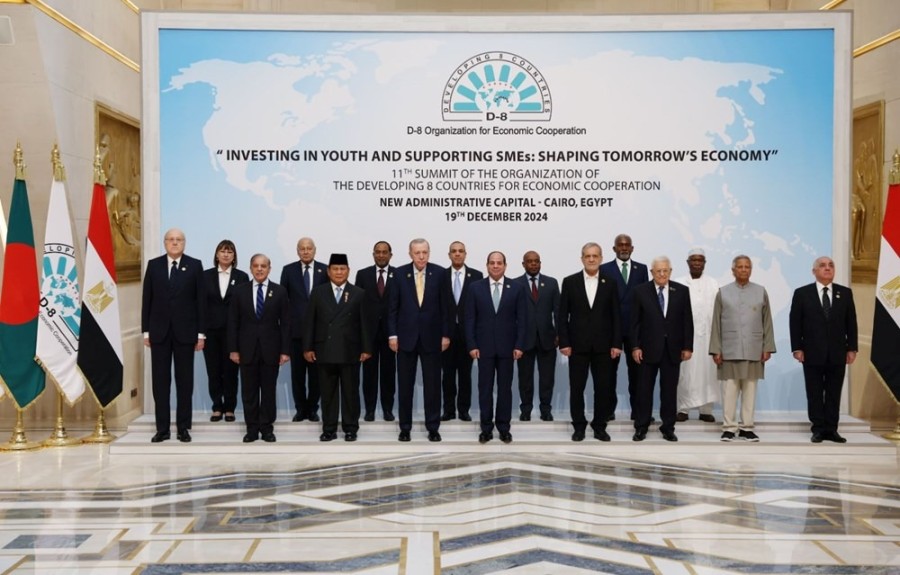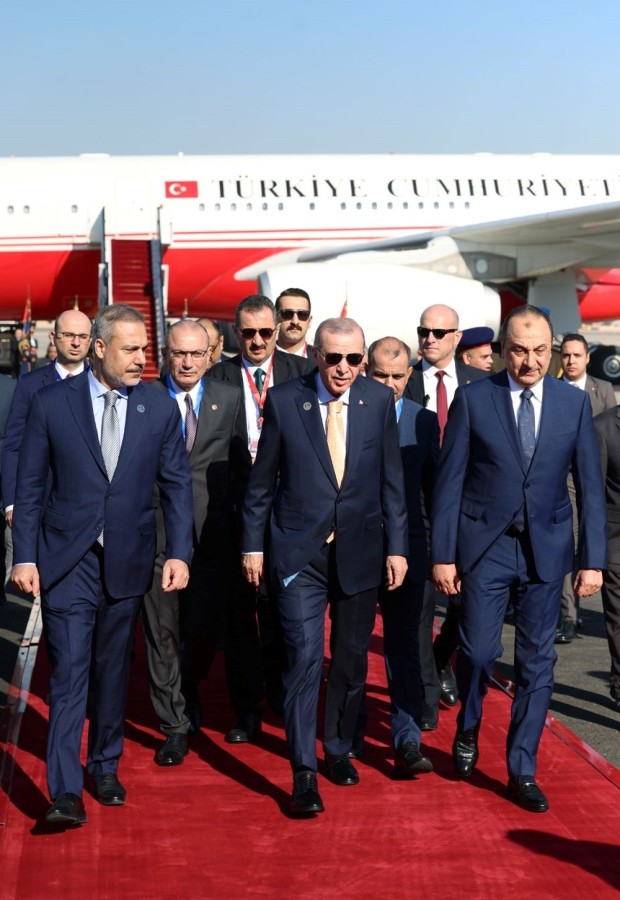 Cumhurbaşkanı Erdoğan, D-8 toplantısına katılmak üzere Mısır'ın başkenti Kahire'ye gitti. Suriye için yoğun diplomasiyi sürdüren Erdoğan, zirve kapsamında Mısır Cumhurbaşkanı Sisi ve İran Cumhurbaşkanı Pezeşkiyan ile de bir araya gelecek. Zirvede konuşan Erdoğan "Tüm dini, mezhebi ve etnik grupların yan yana sulh içinde yaşadığı terörden arındırılmış bir Suriye'nin inşası en samimi beklentimizdir" şeklinde konuştu.