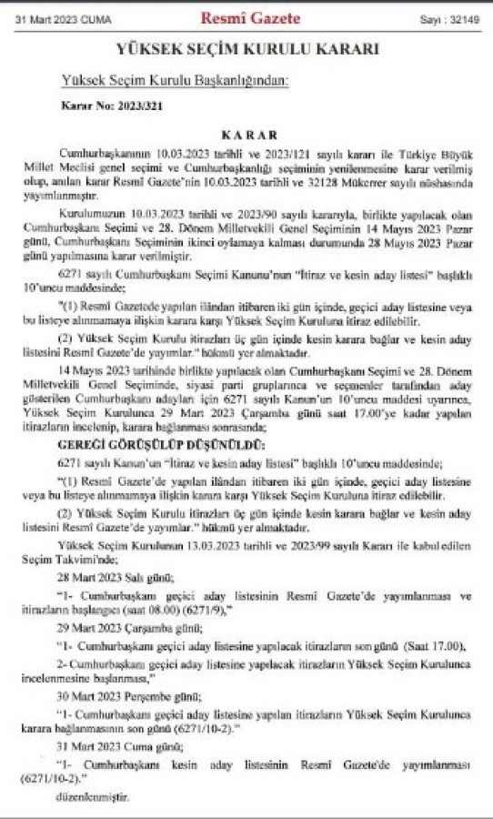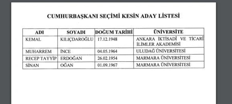 Cumhurbaşkanlığı seçimi kesin aday listesi Resmi Gazete'de yayımlandı.