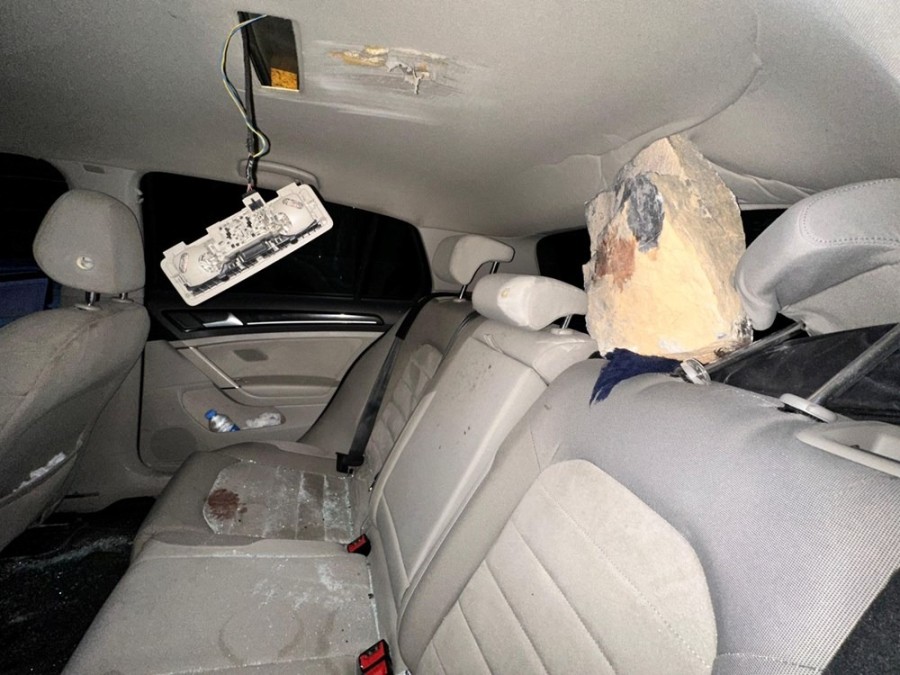 Kaya parçası, ön camdan içeri girdi. Olayda otomobildeki 3 kişi yaralanırken, sürücü de olay yerinden 200 metre ilerde bulunan restorana ulaşıp, oradakilerden yardım istedi. İhbarla olay yerine sağlık, jandarma ve trafik ekipleri sevk edildi.
