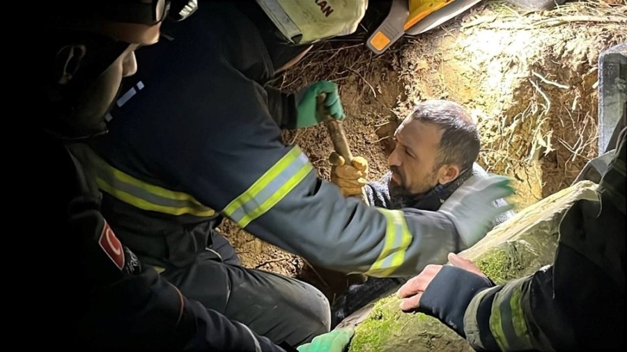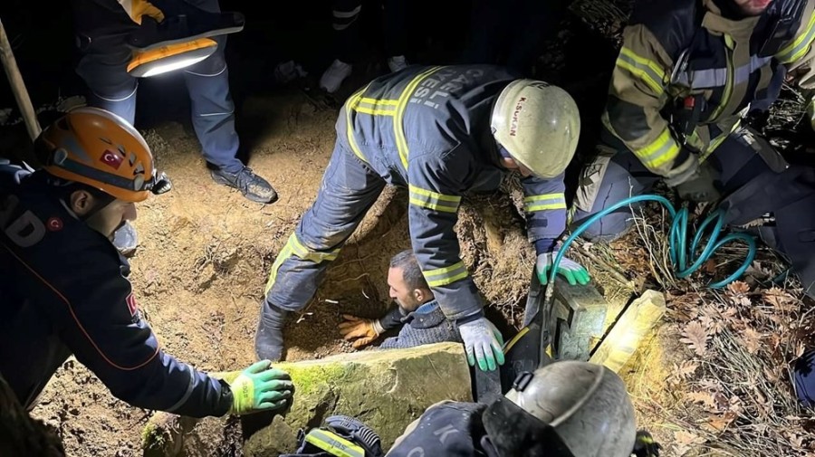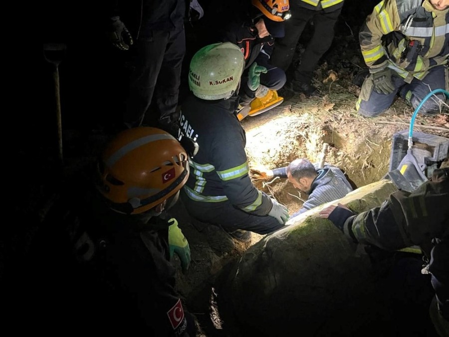 Kocaeli'nin İzmit ilçesinde define aradığı kayanın altında sıkışan Cem Dal, itfaiye ekiplerinin 1 saat süren çalışmasıyla kurtarıldı.