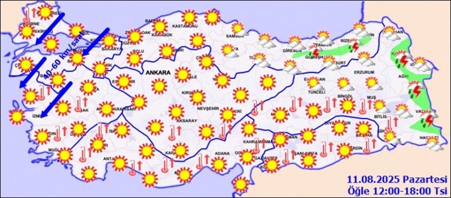 Ancak rüzgar sert esecek. Rüzgarın kuzey ve kuzeydoğu yönlerden kuvvetli (40-60 km/saat) esmesi bekleniyor.