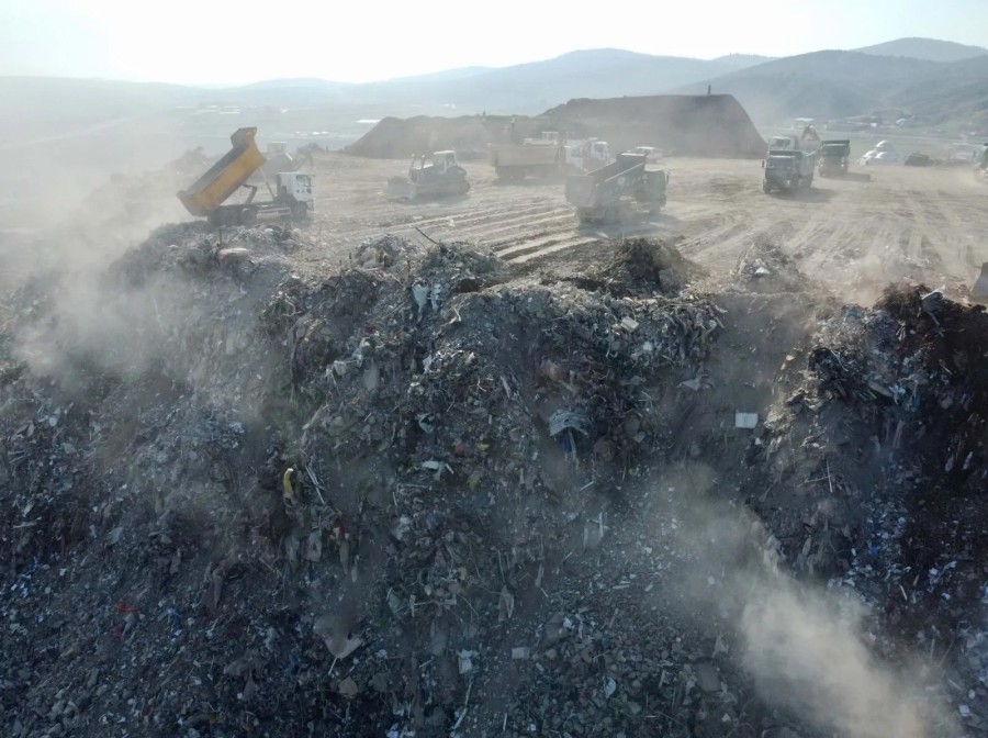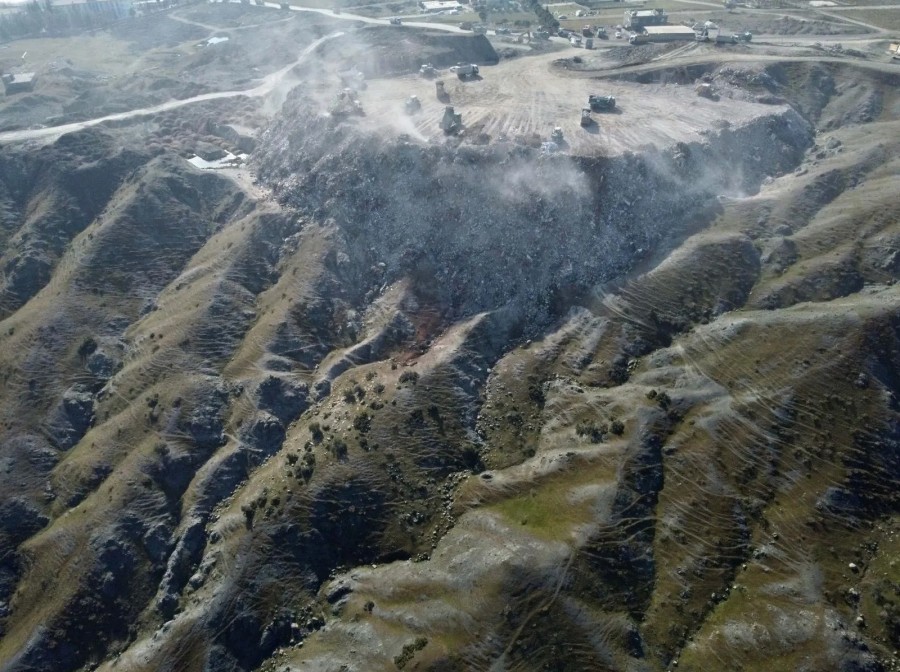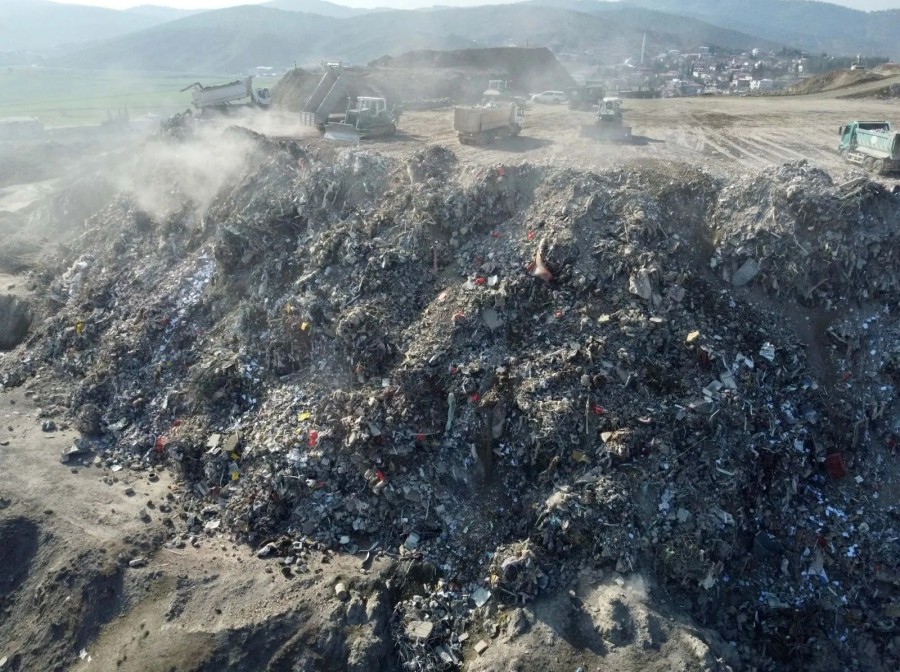 Molozların oluşturduğu enkaz birikintisi ise "dağ" gibi yükseliyor.