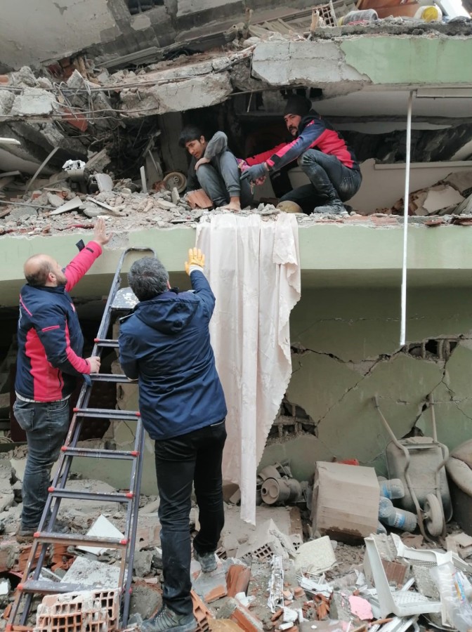 Enkazda çalışma yapan itfaiye ve AFAD ekipleri ilk olarak Sefa Akın'ı yıkıntıların arasından çıkardı. Sefa Akın'ın ablası ve annesinin de içeride olduğunu söylemesi üzerine çalışmalarını hızlandıran ekipler abla Duygu Akın'ı da sağ bir şekilde kurtarmayı başardı. İki kardeşin enkaz altında kalan annelerini kurtarma çalışması ise sürüyor.