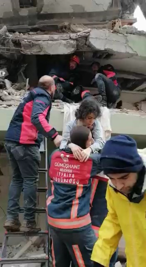 Depremden etkilenen Adıyaman'daki arama kurtarma çalışmalarına Gümüşhane'den destek için giden itfaiye ve AFAD ekipleri depremden 36 saat sonra Sefa Akın ve ablası Duygu Akın'ı enkaz altından sağ çıkarmayı başardı.