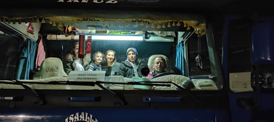 Gaziantep'in Şahinbey ilçesinde yaşayan Yavuz aileleri depremin ilk gününden itibaren kendilerine ait tırda yaşayarak, ailece depremde yıkımların yaşandığı diğer illere yardım götürüyorlar.