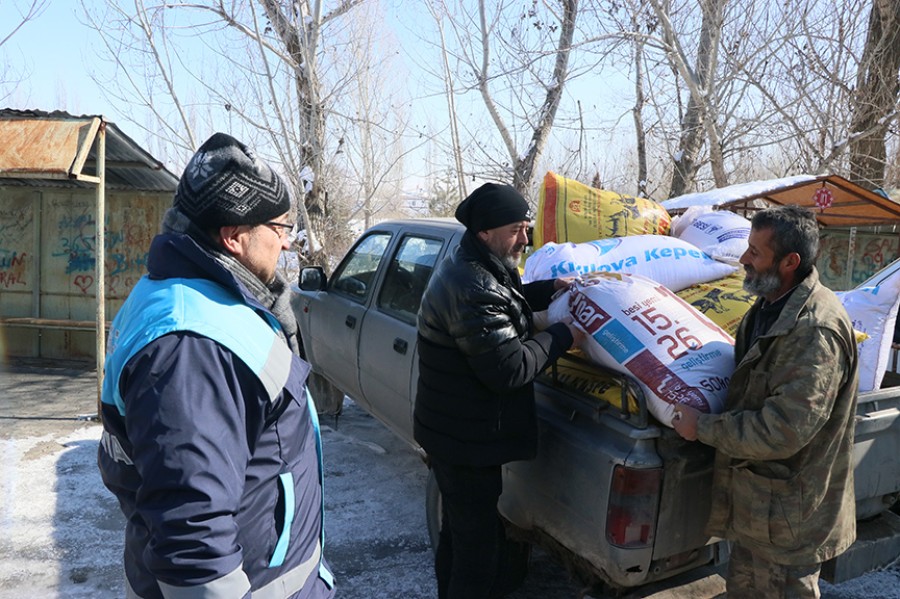 Tarım ve Orman Bakanlığının hayvan kayıt sistemindeki (TÜRKVET) bilgiler doğrultusunda büyükbaş ve küçükbaş hayvan yemleri hem işletmelere hem de üreticilerin yaşadıkları mahallelere götürüldü.