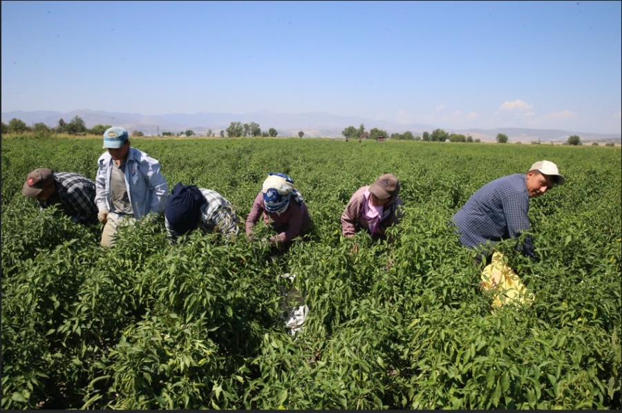 Kahramanmaraş'ın mutfak kültüründe önemli bir yeri olan coğrafi işaret tescilli Maraş biberinde bu yıl 30 bin tonluk bir rekolte bekleniyor. Biber üreticileri, hasat döneminin başlamasıyla birlikte tarlalarda yoğun bir şekilde çalışıyorlar.