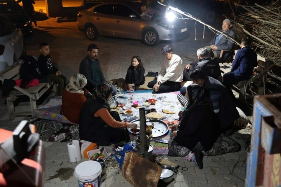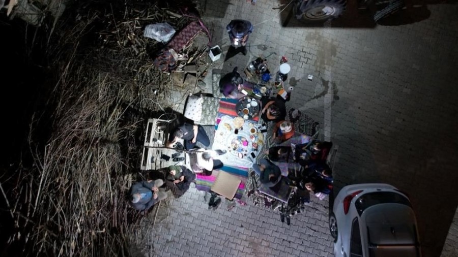 Bazı vatandaşlar evlerinin önünde ateş yakarak soğuktan korunurken bazı vatandaşlar ise evlerinin önünde toplanarak çay içerek yemeklerini yedi.