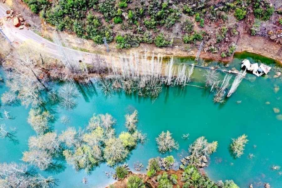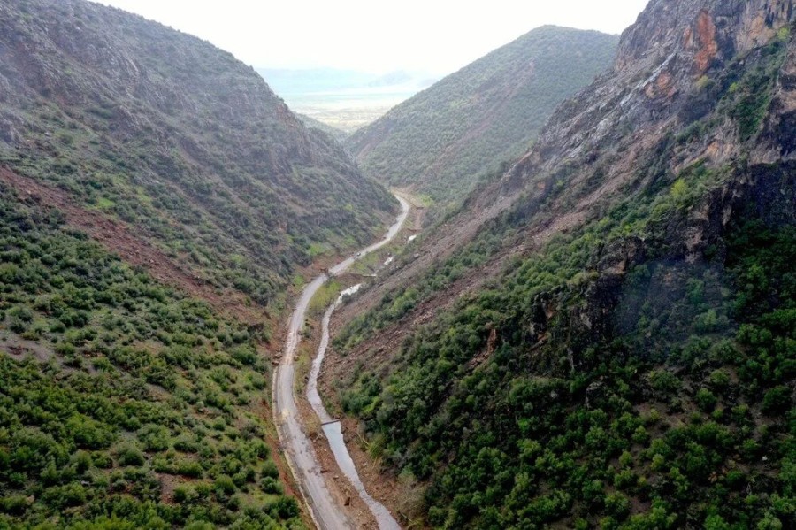 Gaziantep'in İslahiye ilçesinde, Kahramanmaraş merkezli depremlerin ardından yaşanan heyelanın dere yatağını doldurması sonucu gölet oluştu.