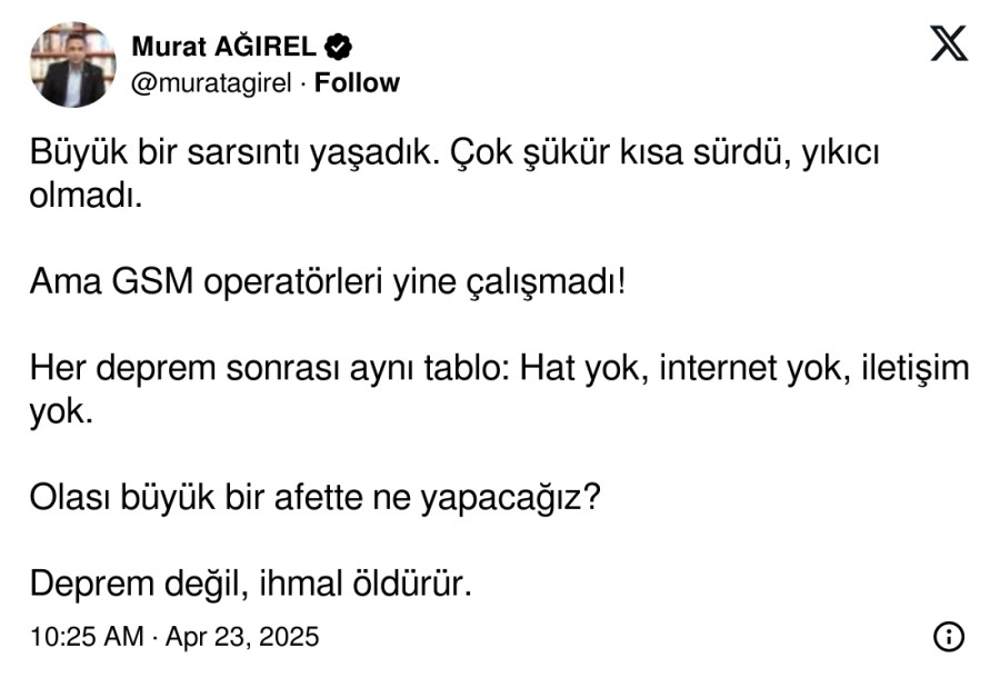 İstanbul'da 6.2 büyüklüğünde deprem meydana geldi. Meydana gelen depremin ardından GSM operatörleri çöktü.