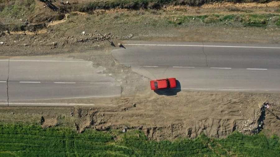 Depremin yollarda bıraktığı izler, drone ile de görüntüledi.
