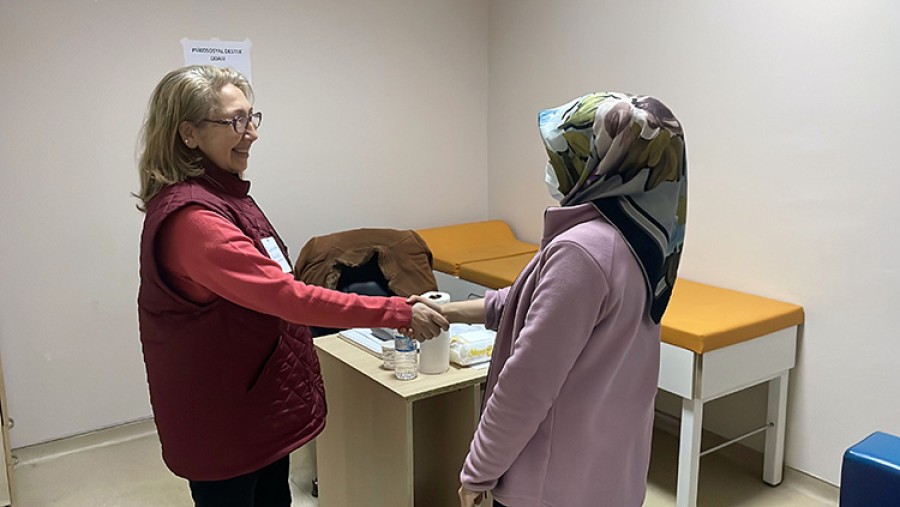 "Kaygıları, korkuları, yorgunlukları var. Anne, baba ve çocukları için kaygıları var. Hastane psikoloğu arkadaşımızın 'Bizler arkadaşlarımızla duygu paylaşımı yapacak durumda değiliz, bizim de desteğe ihtiyacımız var' çağırısıyla hemen hastaneye intikal ettik. Hastane yöneticilerinin desteğiyle burada odalar oluşturduk. Birkaç gündür hastanede acil çalışanlarına destek olmaya, onlara psikolojik destek vermeye çalışıyoruz. Yardım verenlerin afet durumunda ne kadar da yardıma ihtiyaçları olduğunu burada gördük."