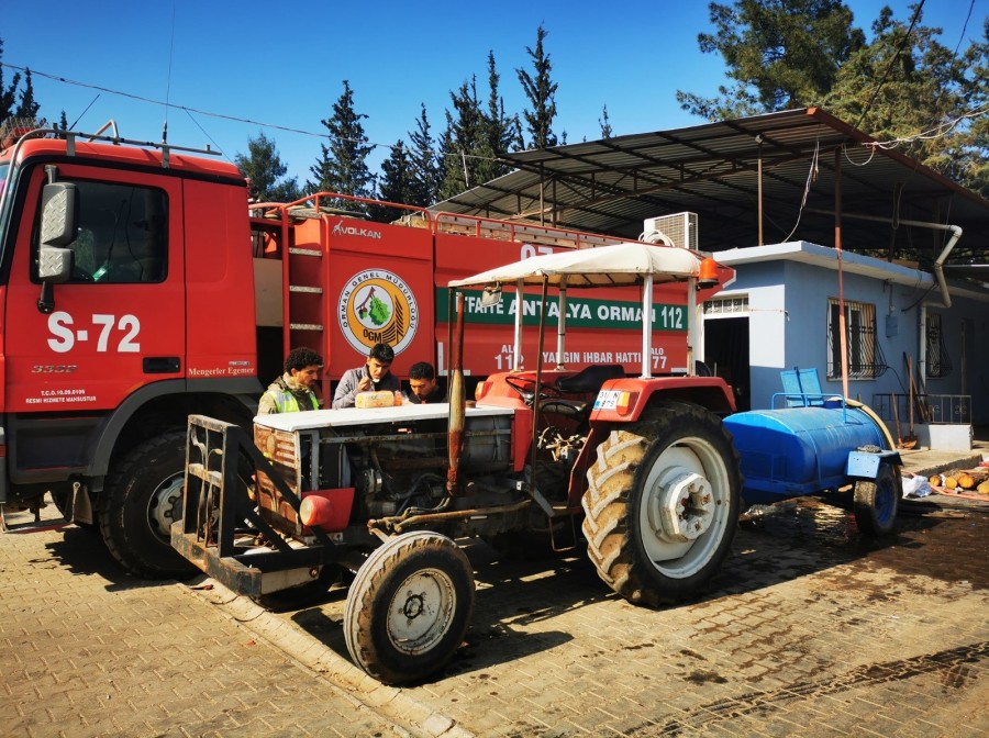 Antalya Orman Bölge Müdürlüğü tarafından, afetzedeler ve bölgede görev yapan ekiplerin içme suyu ihtiyacını karşılamak üzere deprem bölgesine gönderilen 'ateş savaşçıları' ve 20 arazöz deprem bölgesinde 7/24 görev başında çalışıyorlar.