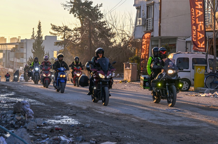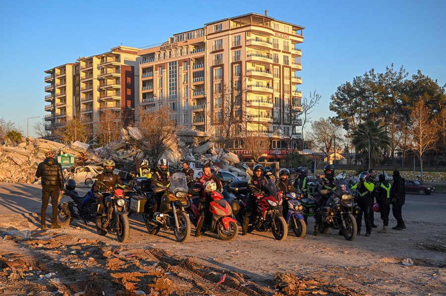 Adıyaman'a ulaşan 25 kişilik motorize ekip, kriz merkezine gelen talepler doğrultusunda belirlenen noktalardan ekiplerin hazırladığı malzemeleri enkaz yığınlarını aşarak afetzedelere ulaştırmaya başladı.