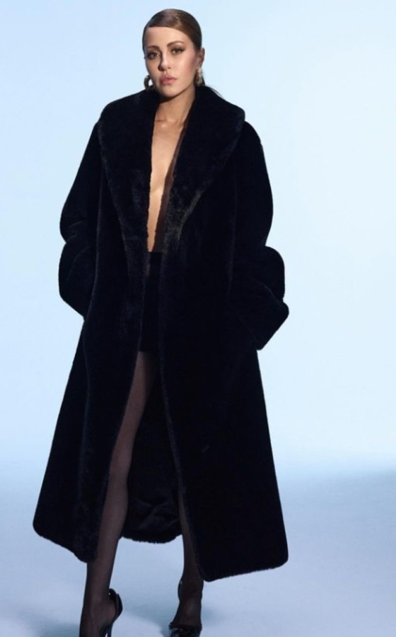 Siyah paltosunun içine hiçbir şey giymeyen Uluğ'un iddialı karesi kısa sürede beğeni ve yorum yağmuruna tutuldu.