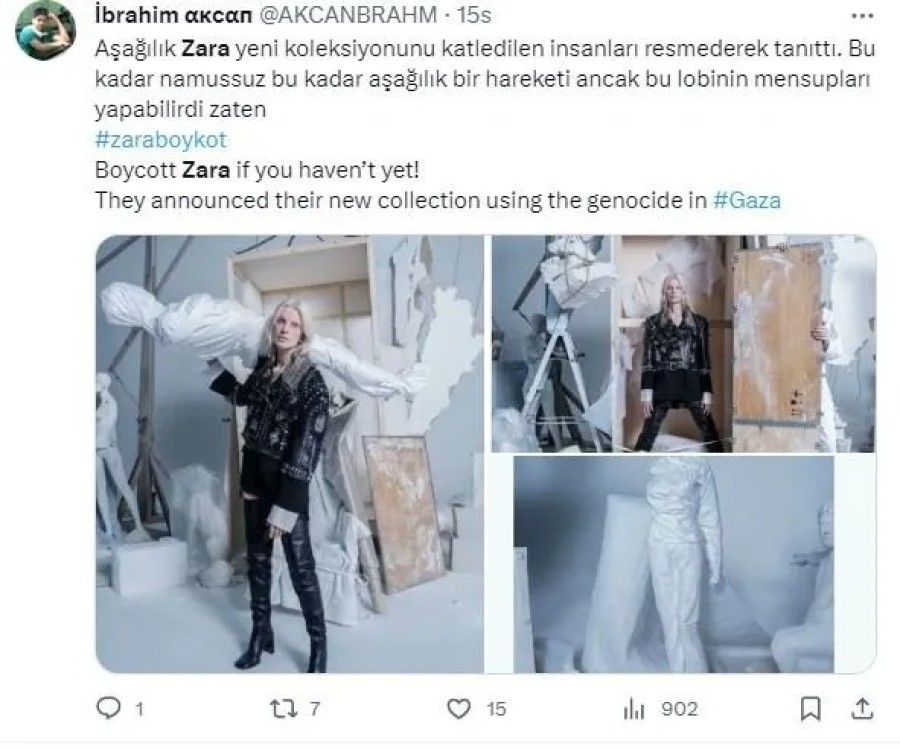 Sosyal medya kullanıcıları insanları "Zara'yı boykot etmeye" teşvik etti.