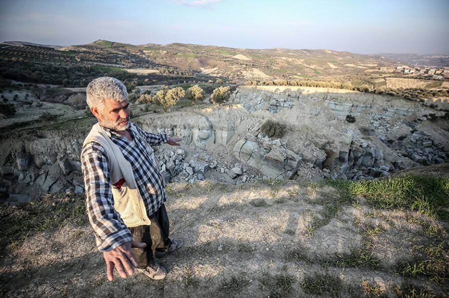 Hatay'ın Altınözü ilçesinde Kahramanmaraş merkezli depremlerde devasa yarığın oluşmasıyla sahibinin tanımakta güçlük çektiği arazi, çevredekilerin ilgisini çekiyor.