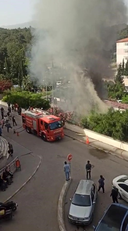 İskenderun Devlet Hastanesi'nin B Blok bahçesinde poliklinik olarak kullanılan 3 konteynerde sabah saatlerinde yangın çıktı.
