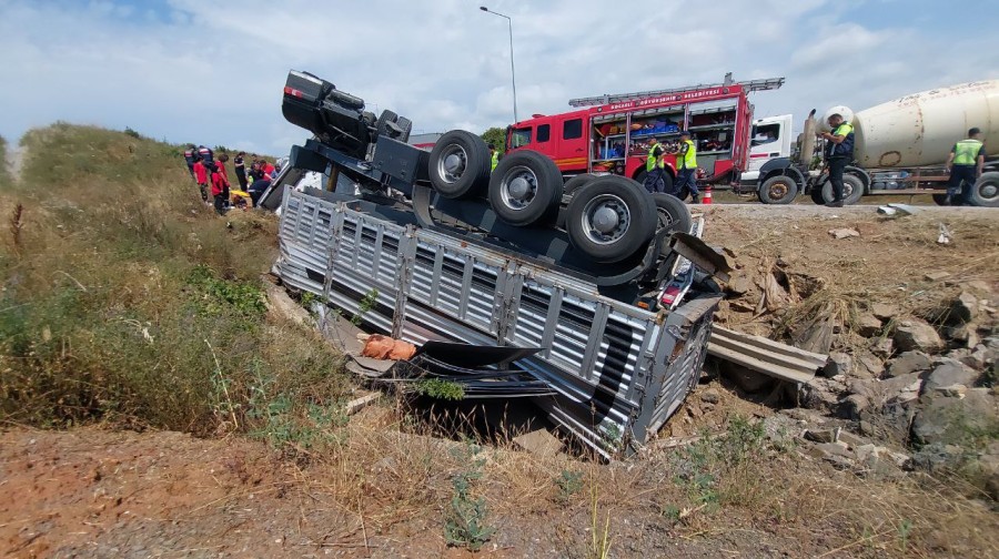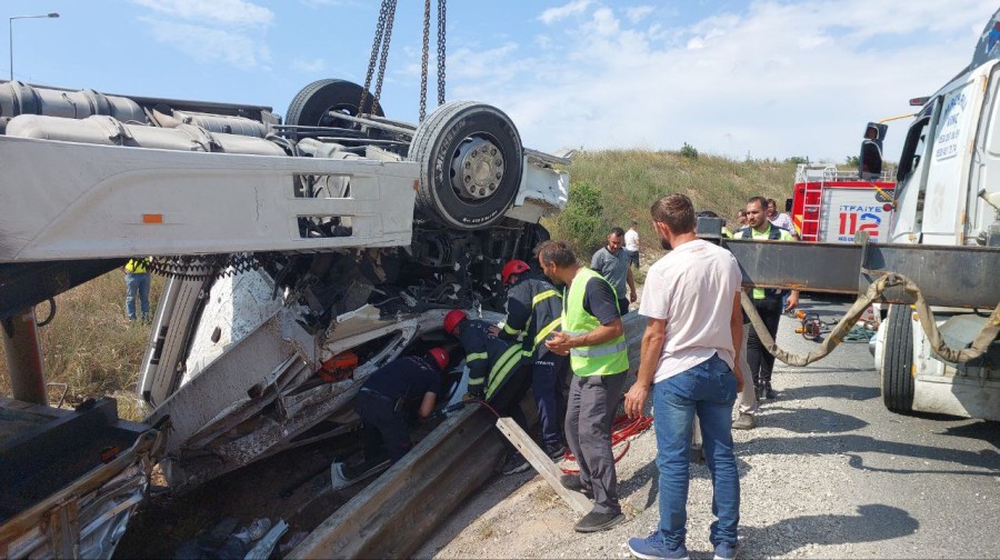 Kocaeli'nin Dilovası ilçesinde devrilen demir sac yüklü tırın sürücüsü hayatını kaybetti.
