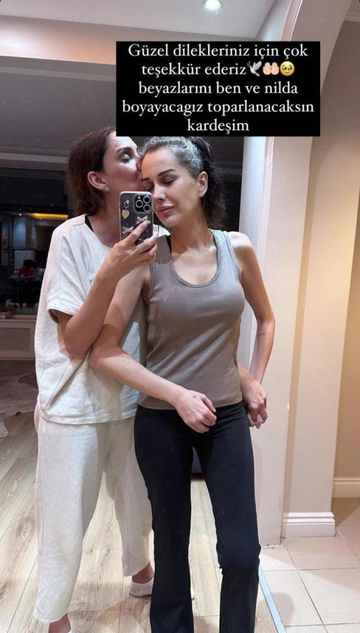 Sıla Doğu, Dilan Polat'ın son halinin fotoğrafını, "Güzel dilekleriniz için çok teşekkür ederiz. Beyazlarını ben ve Nilda boyayacağız. Toparlanacaksın kardeşim" notuyla paylaştı. Fotoğrafta Dilan Polat'ın saçlarının beyazladığı görüldü.